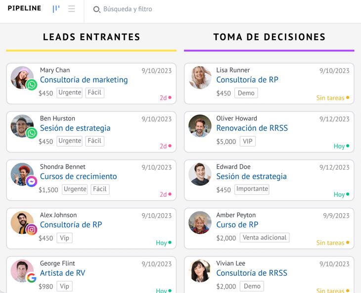 El pipeline es un embudo omnicanal, personalizable que te ayudará a seguir tareas, organizar tus clientes, y mantenerlos en movimiento sin esfuerzo.