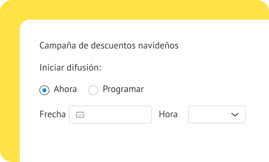 Mantén el interés de tus clientes potenciales y existentes después de terminar la charla mediante mensajes de difusión en apps como WhatsApp Business. Combina a la perfección con Salesbot.
