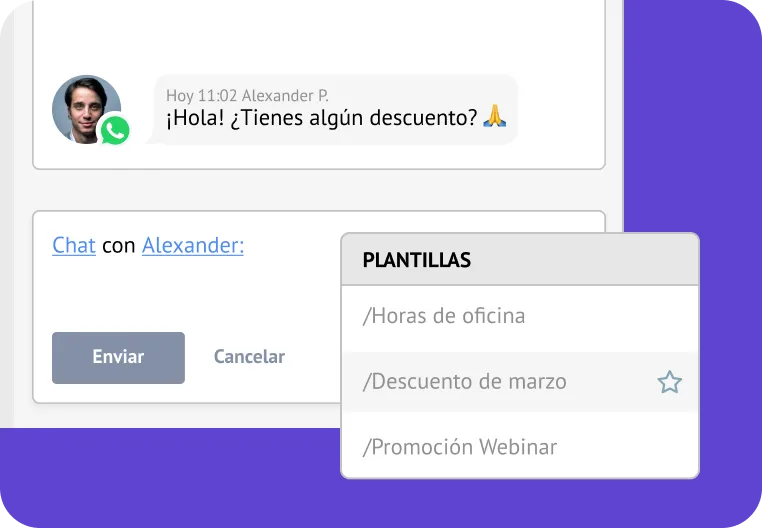 Crea una colección de mensajes con archivos multimedia y botones que podrás seleccionar y enviar en un instante.